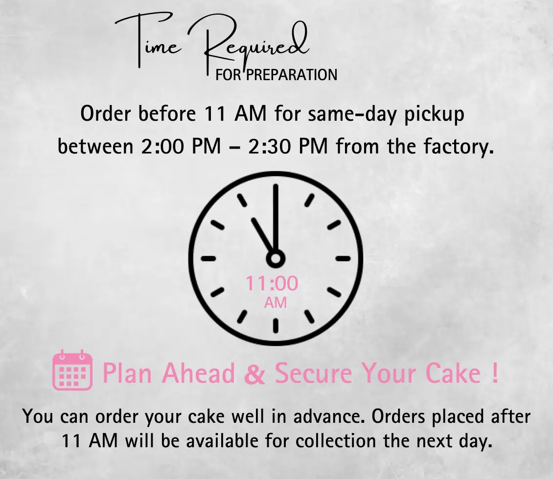 Our cakes must be stored in a refrigerator at a temperature below 5°C. Improper handling or storage may cause the buttercream to melt and the cake to lose its structure. For the best serving experience, remove the cake from the refrigerator approximately 30 to 50 minutes before serving, depending on the room temperature, to allow it to reach room temperature. Consume within 5 days of delivery.